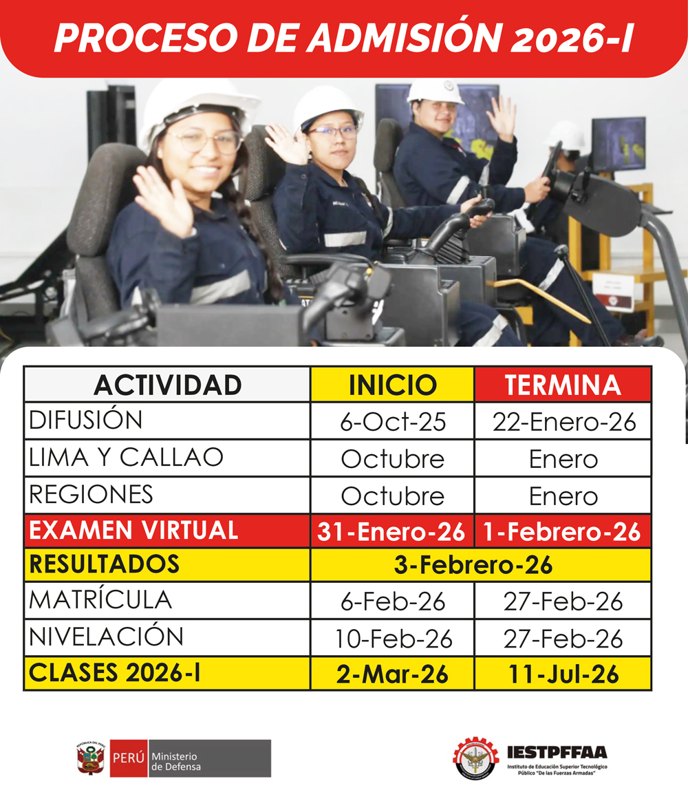 A continuación te detallamos todo el Proceso de Admisión 2026-I del IESTPFFAA.