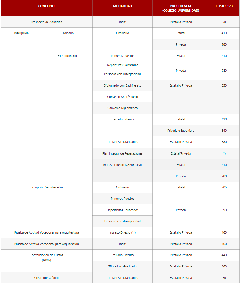 Pagos por derecho de inscripción ¿Cuánto cuesta participar del proceso de admisión 2026-I?