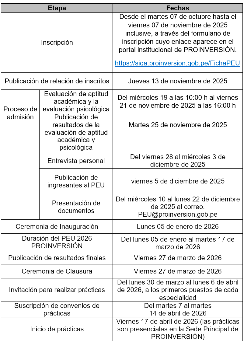 Cronograma completo y fechas importantes de las Becas Proinversión