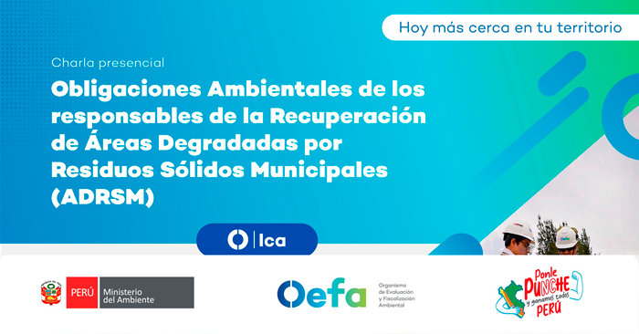 Charla "Obligaciones ambientales de los responsables de la recuperación de Áreas Degradadas por Residuos Sólidos Municipales (ADRSM)" del OEFA