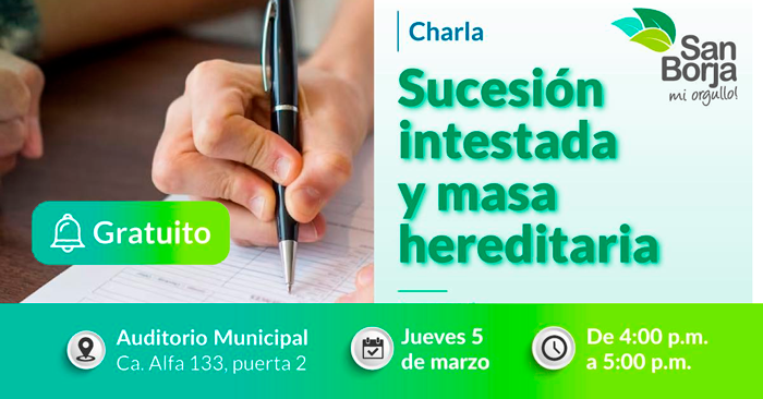 Charla presencial: "Sucesión intestada y masa hereditaria" de la Municipalidad De San Borja