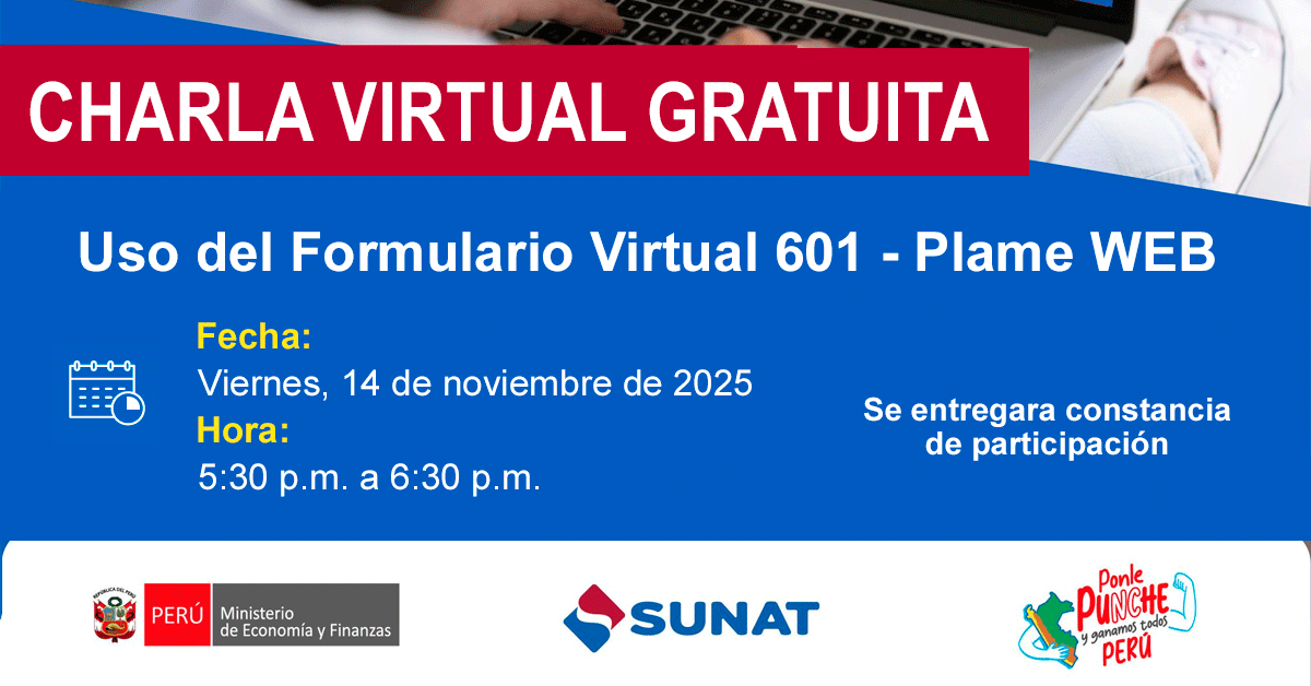 Charla virtual gratuita "Uso del Formulario Virtual 601 - Plame WEB" de la SUNAT
