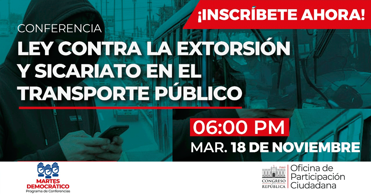 Conferencia semipresencial "Ley contra la extorsión y sicariato en el transporte público" del Congreso de la República del Perú