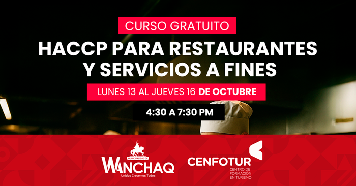 Curso presencial gratuito de "HACCP para Restaurantes y Servicios Afines" de la Municipalidad Distrital De Wanchaq
