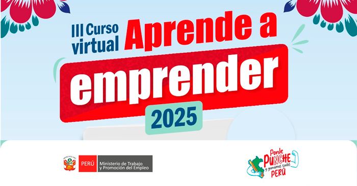 Participa en el III Curso virtual gratuito "Aprende a emprender 2025" del Ministerio de Trabajo. Se entregará constancia