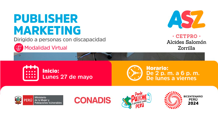 Curso virtual gratuito "Publisher Marketing" del MIMP Conadis