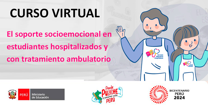 El Ministerio de Educación, a través de la Dirección General de Servicios Educativos Especializados (DIGESE), invita a docentes, de educación básica, equipos interdisciplinarios de los Servicios Educativos Hospitalarios (SEHO) y a otros actores educativos interesados en la educación de niñas, niños, adolescentes y jóvenes que se encuentran hospitalizados o recibiendo tratamiento ambulatorio extenso domiciliario a preinscribirse y participar en el curso “El soporte socioemocional en estudiantes hospitalizados y con tratamiento ambulatorio”.