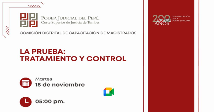 Evento virtual "La prueba: Tratamiento y control" de la Corte Superior de Justicia de Tumbes