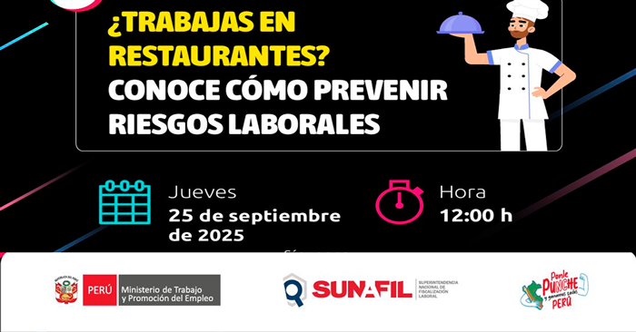 Evento virtual "¿Trabajas en restaurantes? Conoce cómo prevenir riesgos laborales" de la SUNAFIL