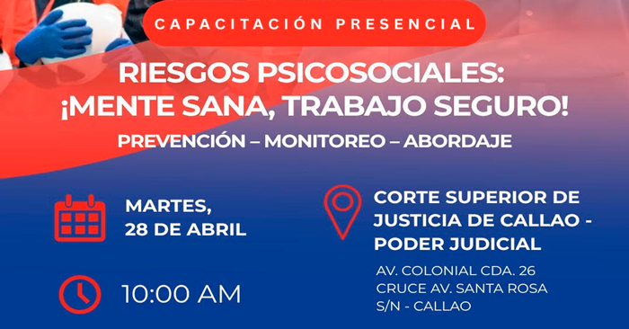 Organizado por: La Dirección Regional de Trabajo y Promoción del Empleo del Gobierno Regional del Callao, a través del Consejo Regional de Seguridad y Salud en el Trabajo, en conmemoración del Día Mundial de la Seguridad y Salud en el Trabajo