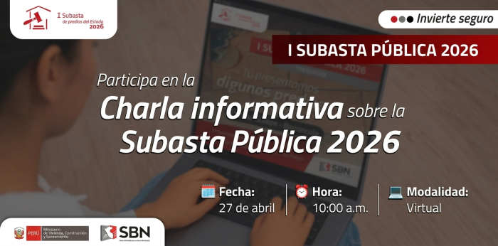 Charla VIRTUAL - "Charla informativa sobre la Subasta Pública 2026" SBN-Superintendencia Nacional de Bienes Estatales