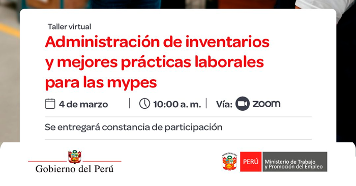Taller virtual gratuito: "Administración de inventarios y mejores prácticas laborales para las mypes" del MTPE
