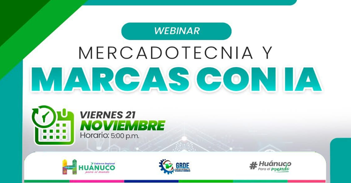 Webinar virtual gratuito "Mercadotecnia y Marcas con IA" del Gobierno Regional de Huánuco