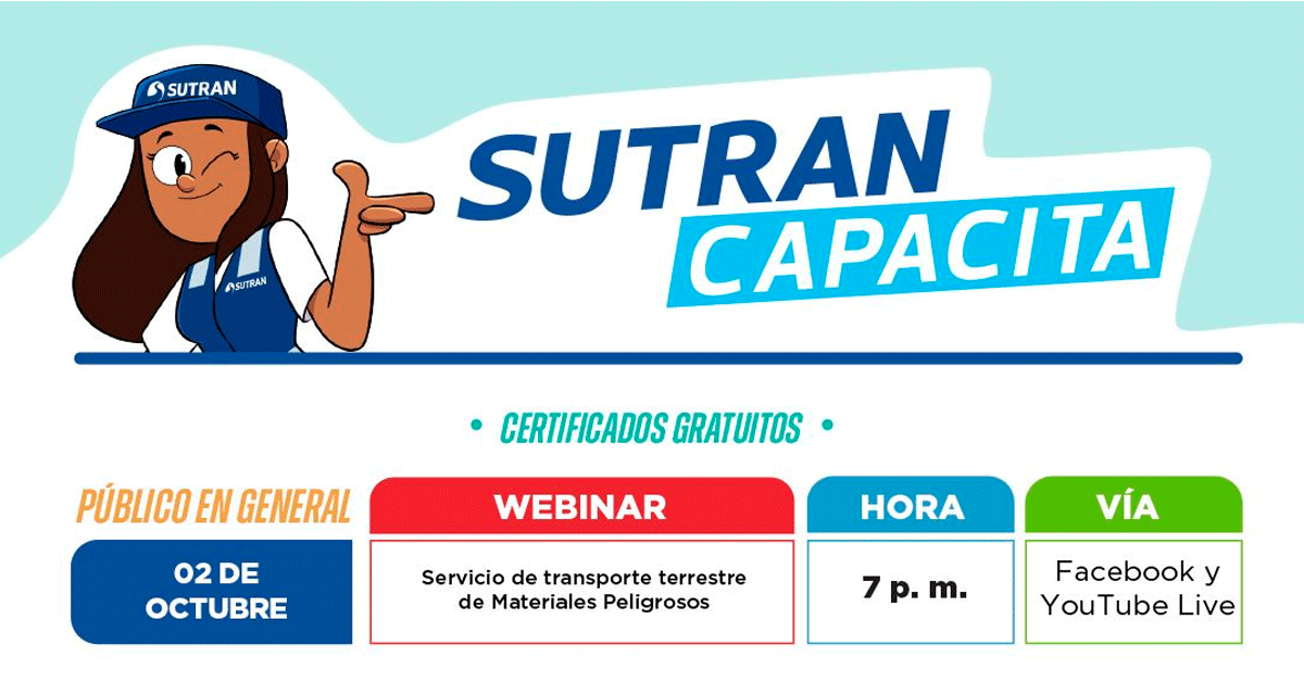 Webinar virtual gratuito: "Servicio de transporte terrestre de Materiales Peligrosos" de la SUTRAN